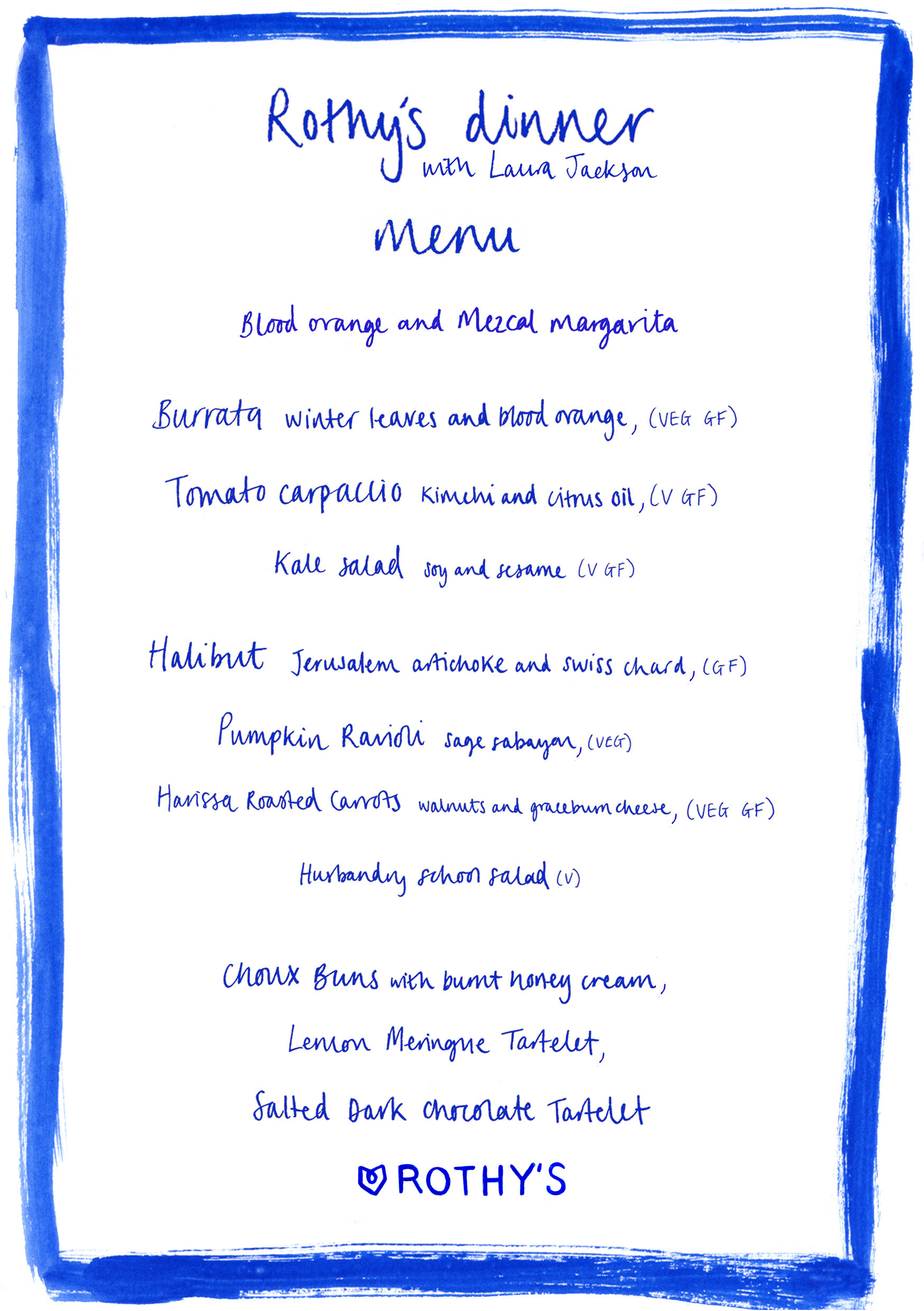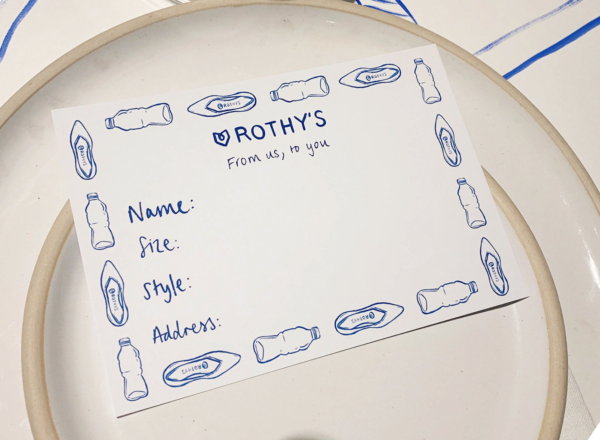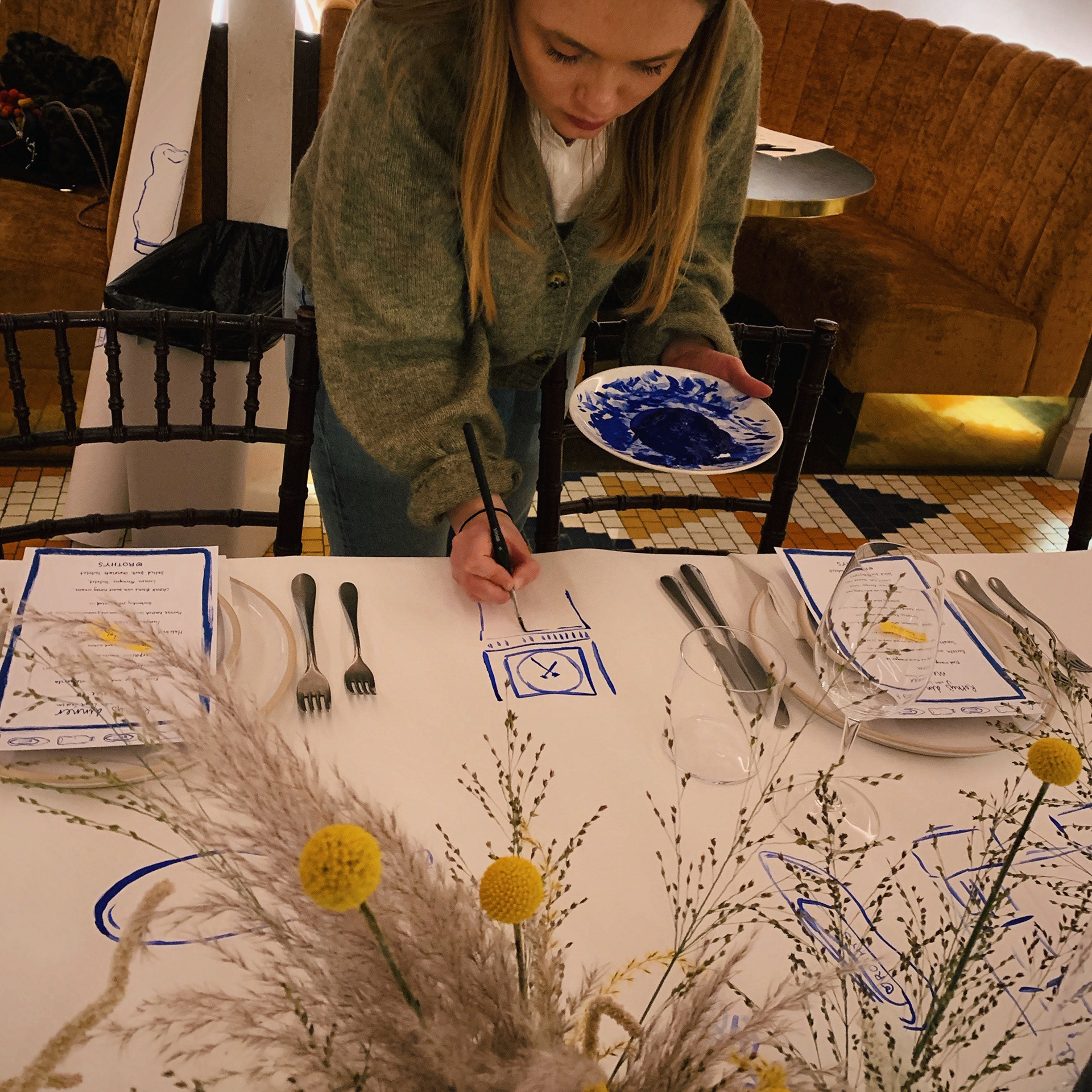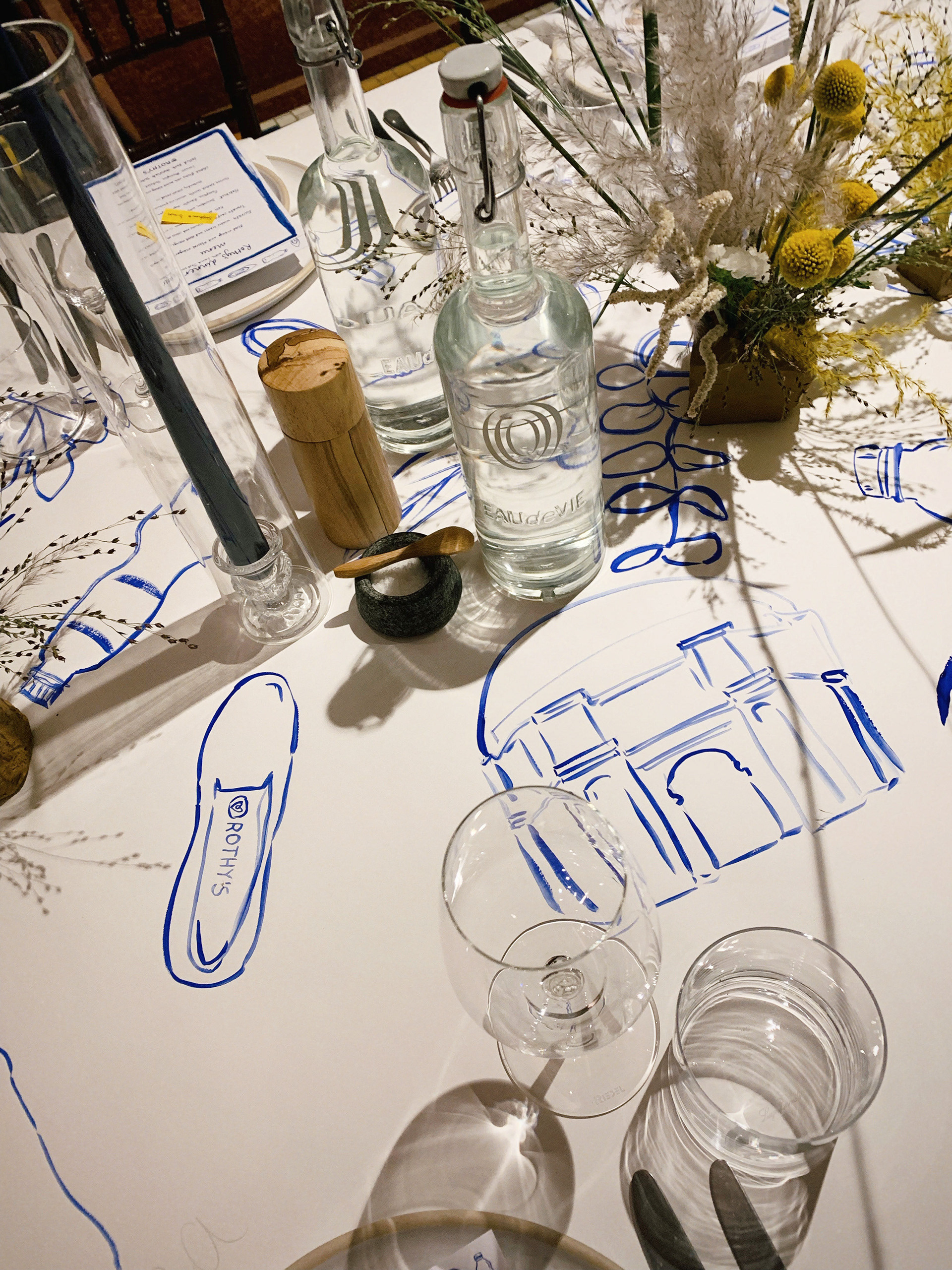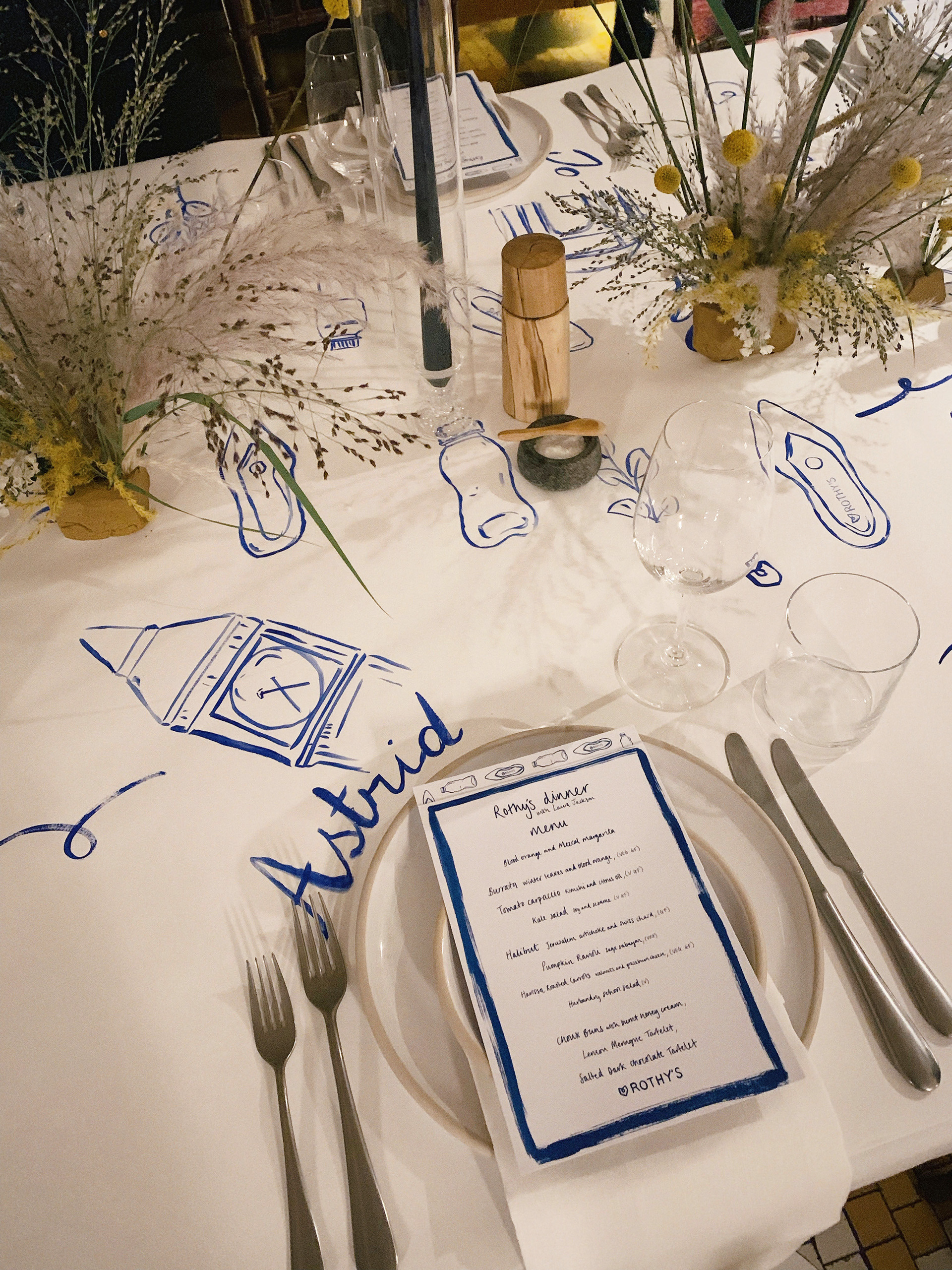 Bespoke tablecloth and illustrated menus for Rothy's UK launch dinner party