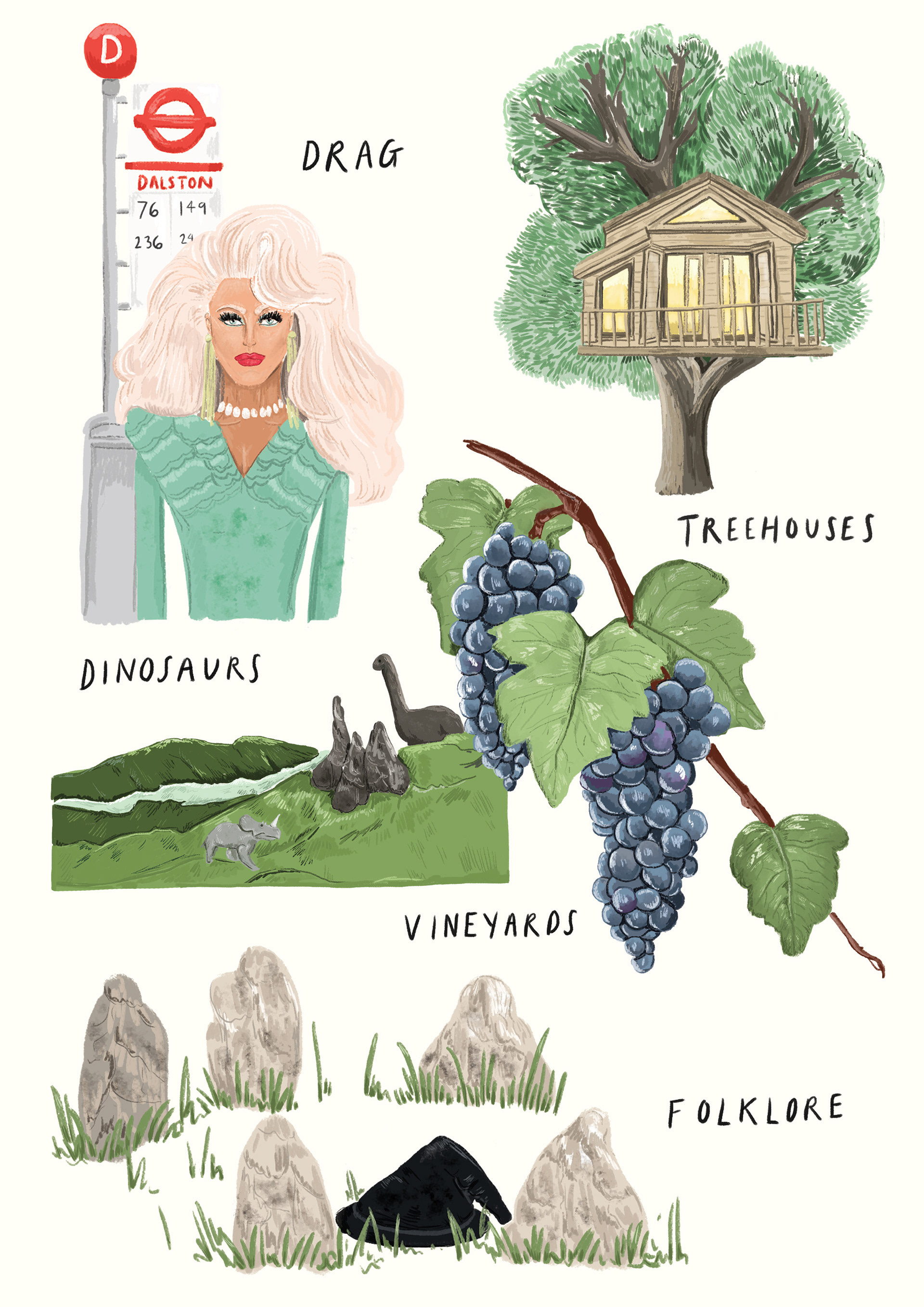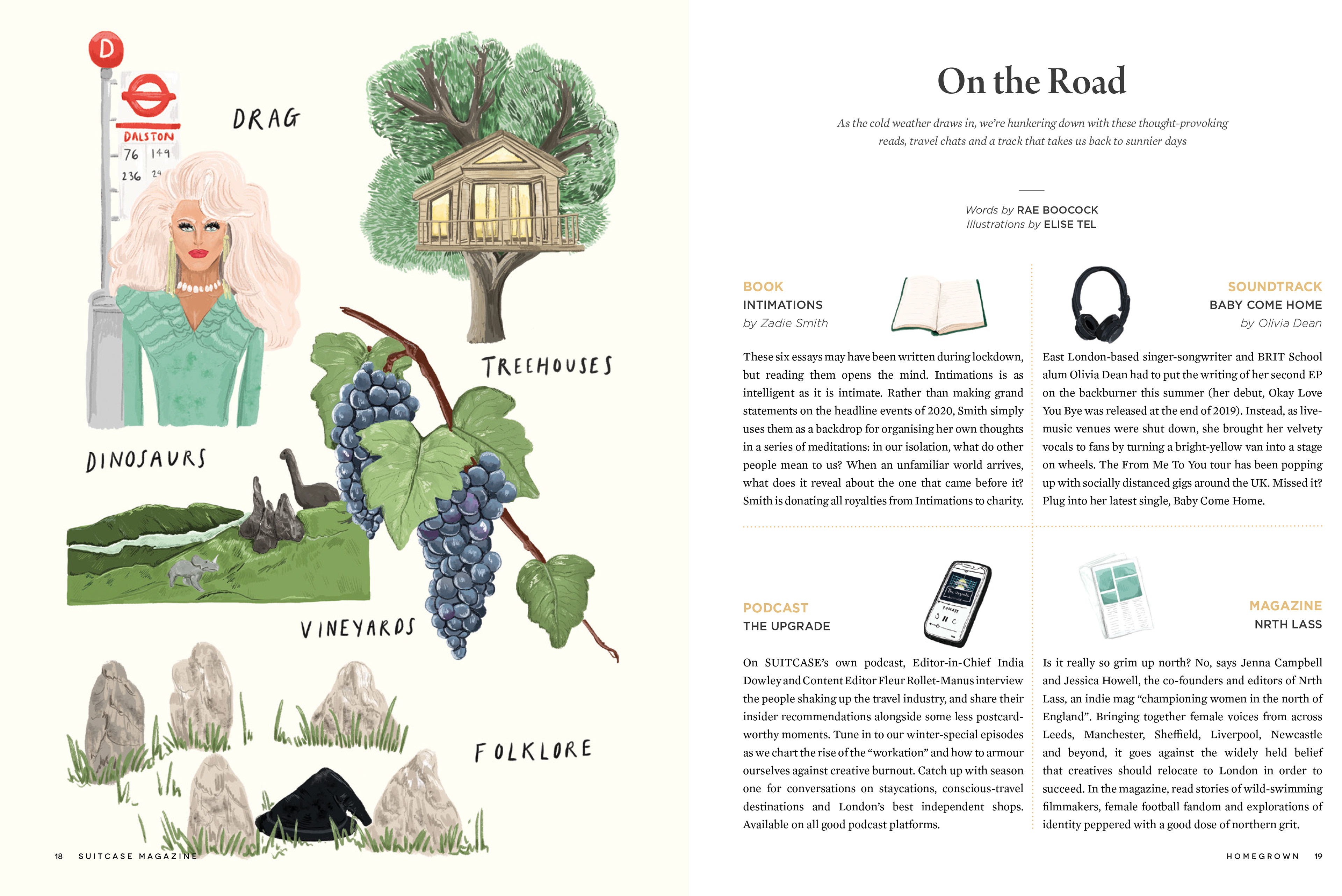 Full-page and spot illustrations for SUITCASE Magazine, Vol. 32 'Homegrown'